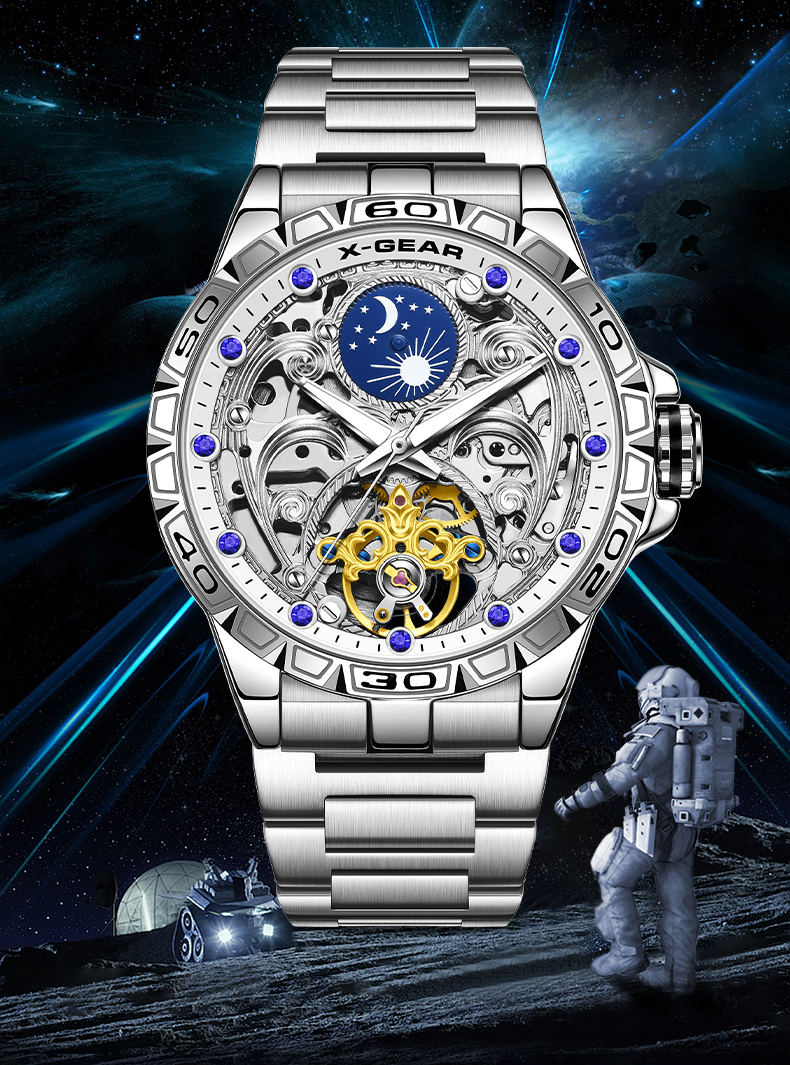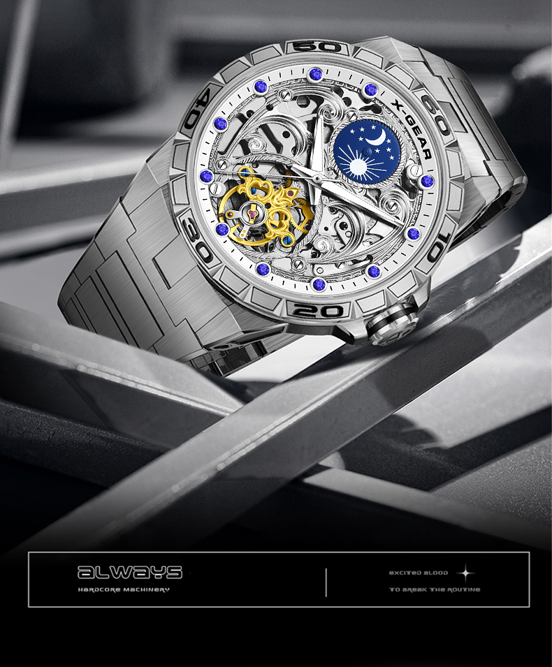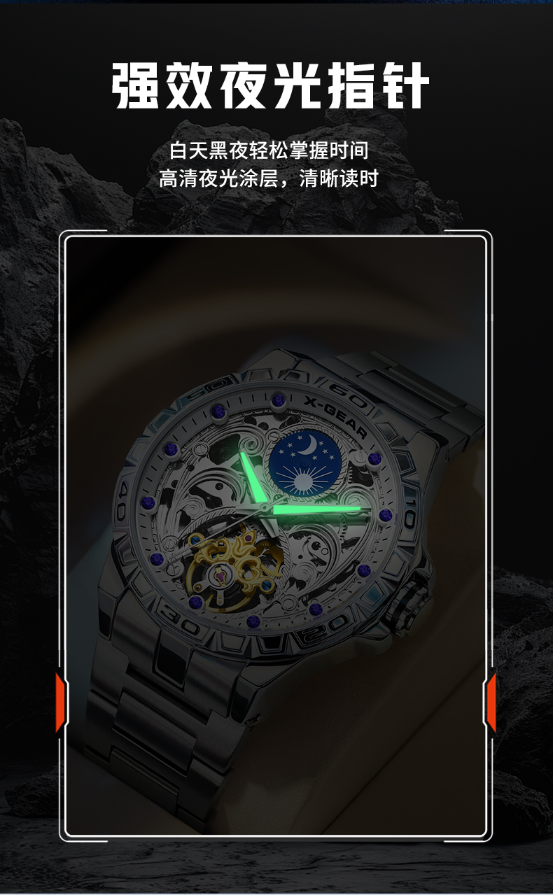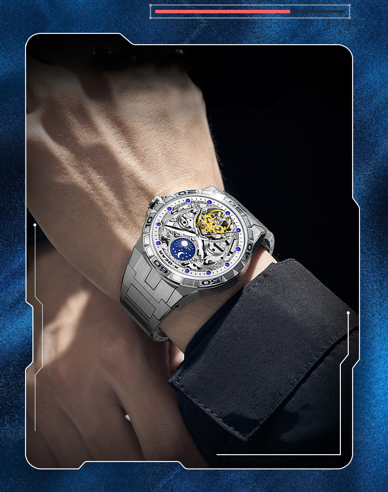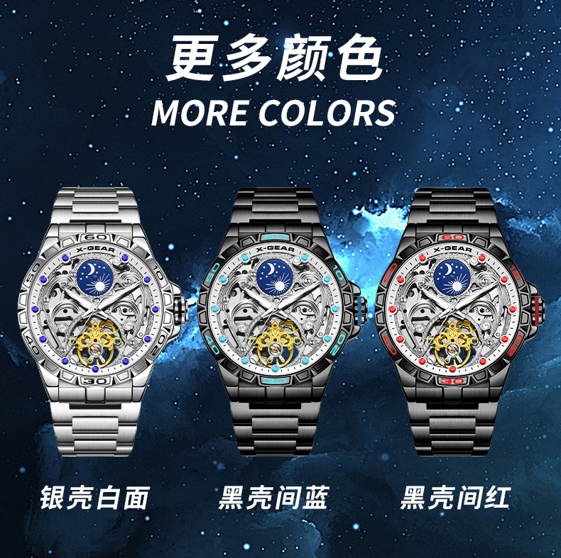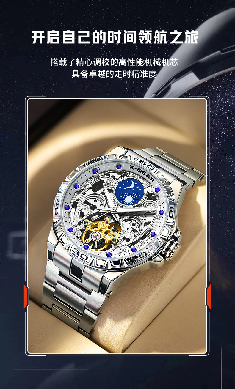 星轨领航者手表男镂空飞轮多功能全自动机械表