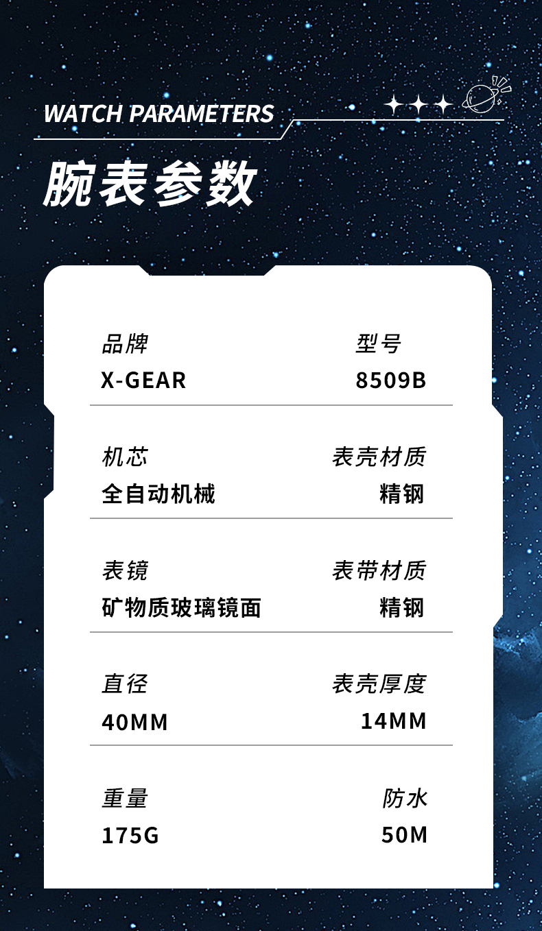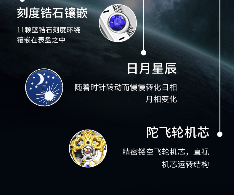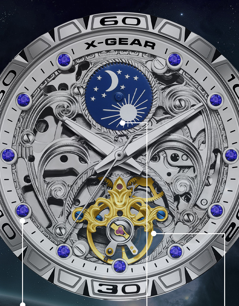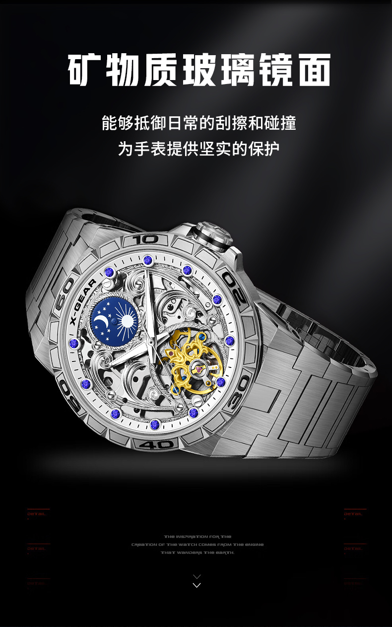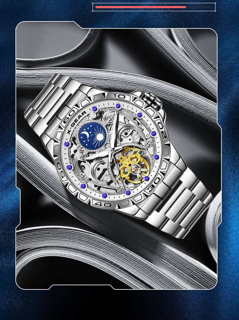 星轨领航者手表男镂空飞轮多功能全自动机械表